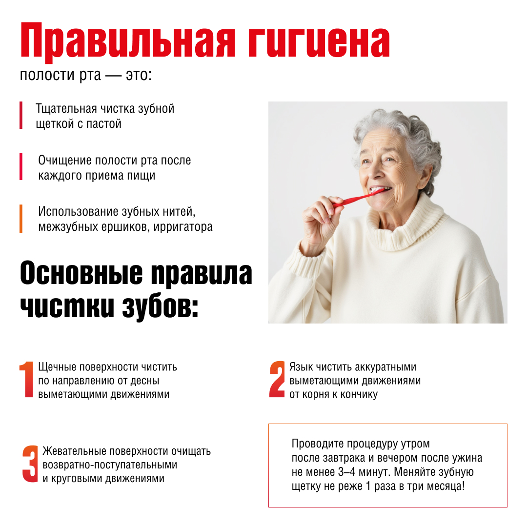 К Международному дню стоматолога (9 февраля) Департамент подготовил инфографику «Гигиена полости рта в пожилом возрасте»